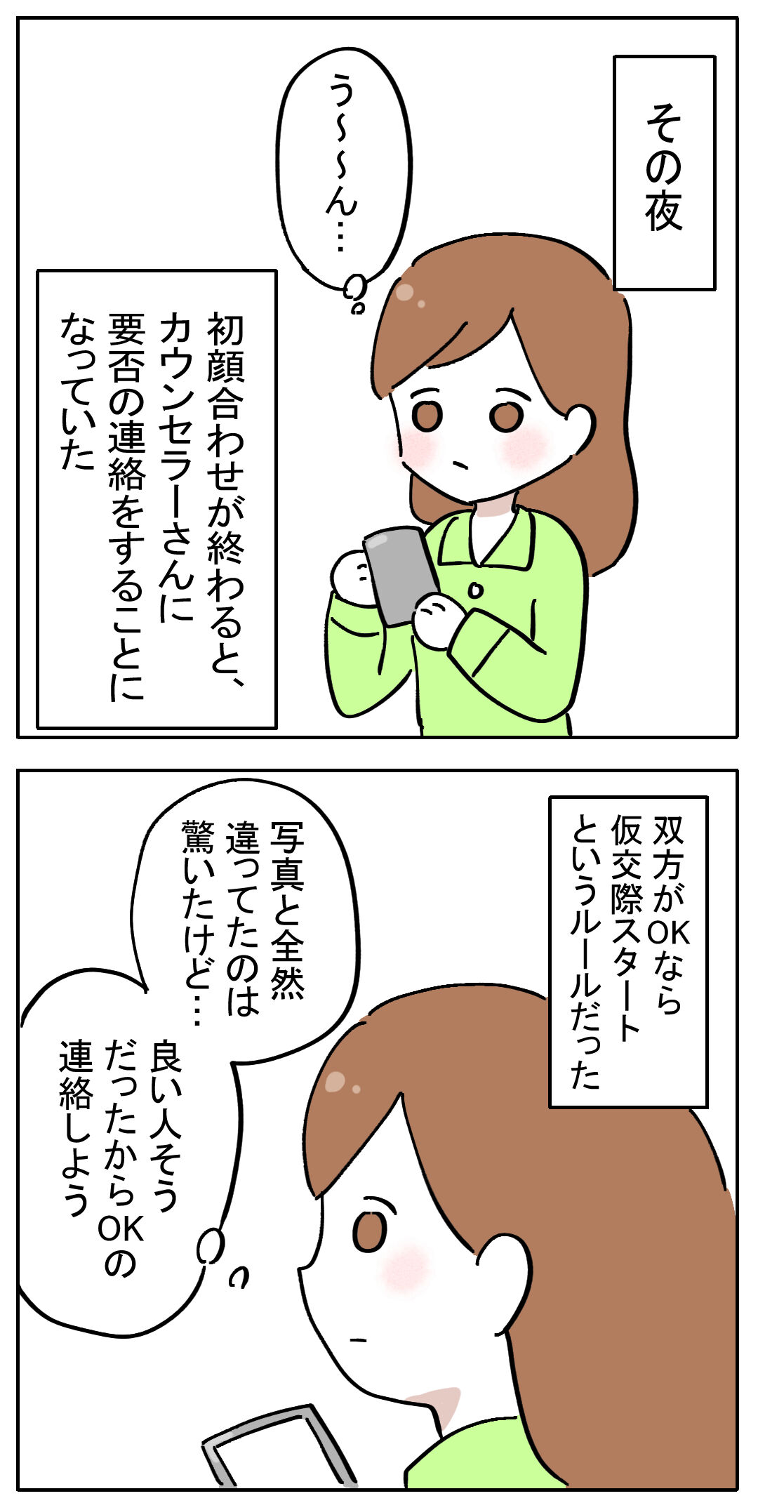 2023年03月12日 失敗だらけの婚活だったけど、最終的にAI婚活で結婚した話⑨ 前回はこちら 第1話はこちら写真と全然違ってたら驚きですよね🤣結婚相談所に登録した後に、ふくよかになったのでしょうか…。続きます ⇩読者登録してもらえると嬉しいです! ⇩ブログランキング参加中! 「AI婚活」カテゴリの最新記事 < 前の記事次の記事 > コメント コメントフォーム 名前 コメント 記事の評価 リセット リセット 顔 星 情報を記憶 コメントを投稿する
