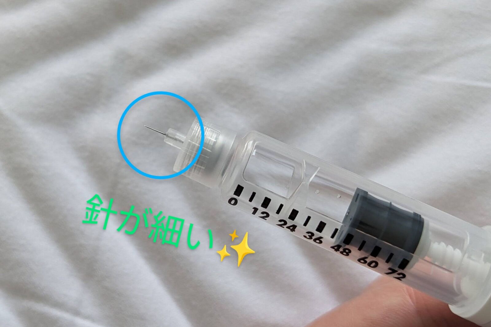 準備が難しい針が太いタイプ。